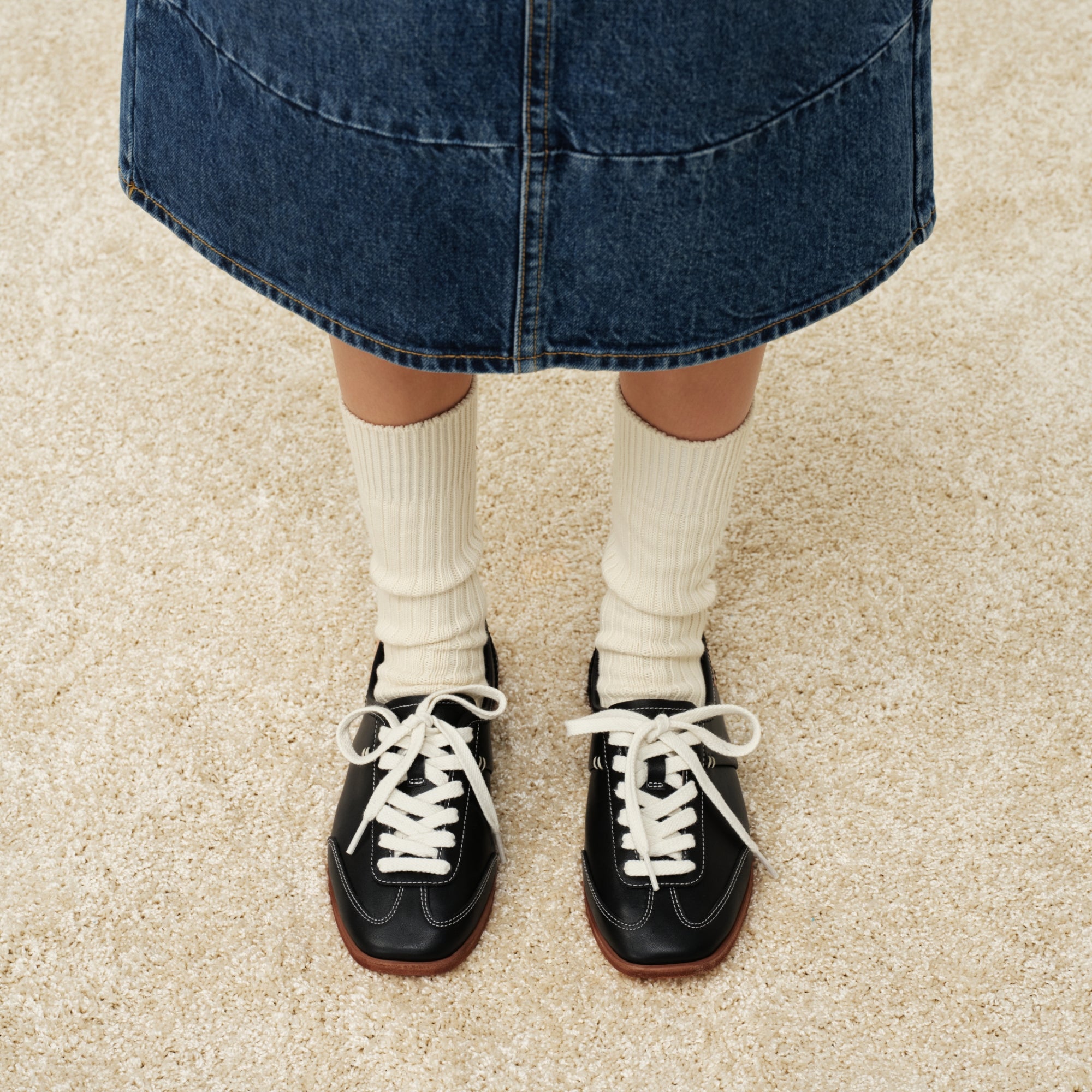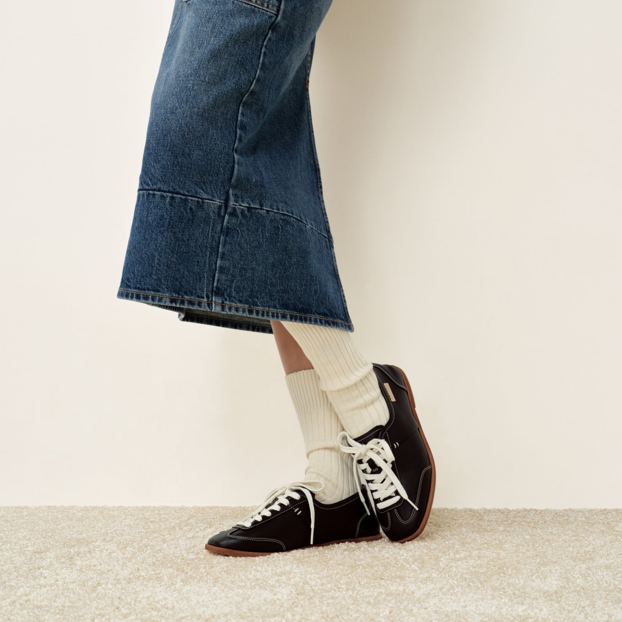 Building on the silhouette of German training shoes, the brand explores a more stylized expression with the DAILY DRESS—a pair featuring sharp, structured lines.