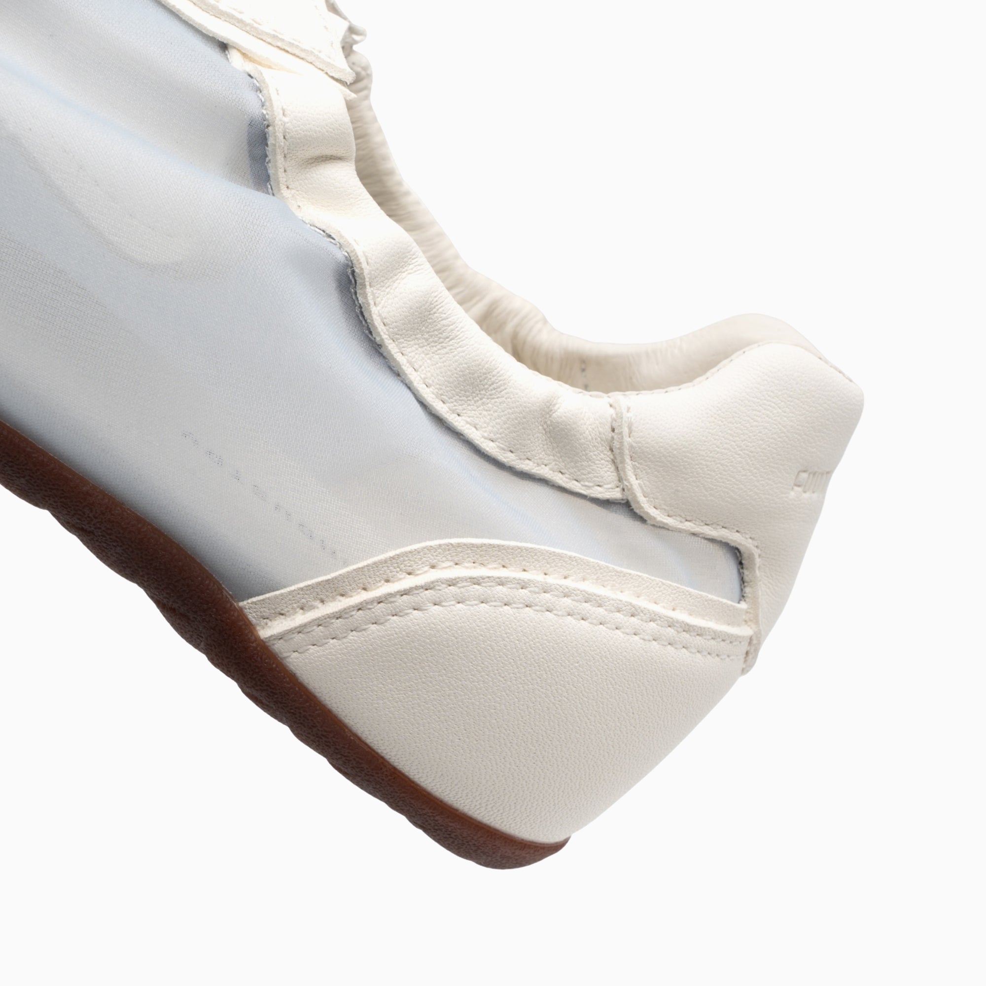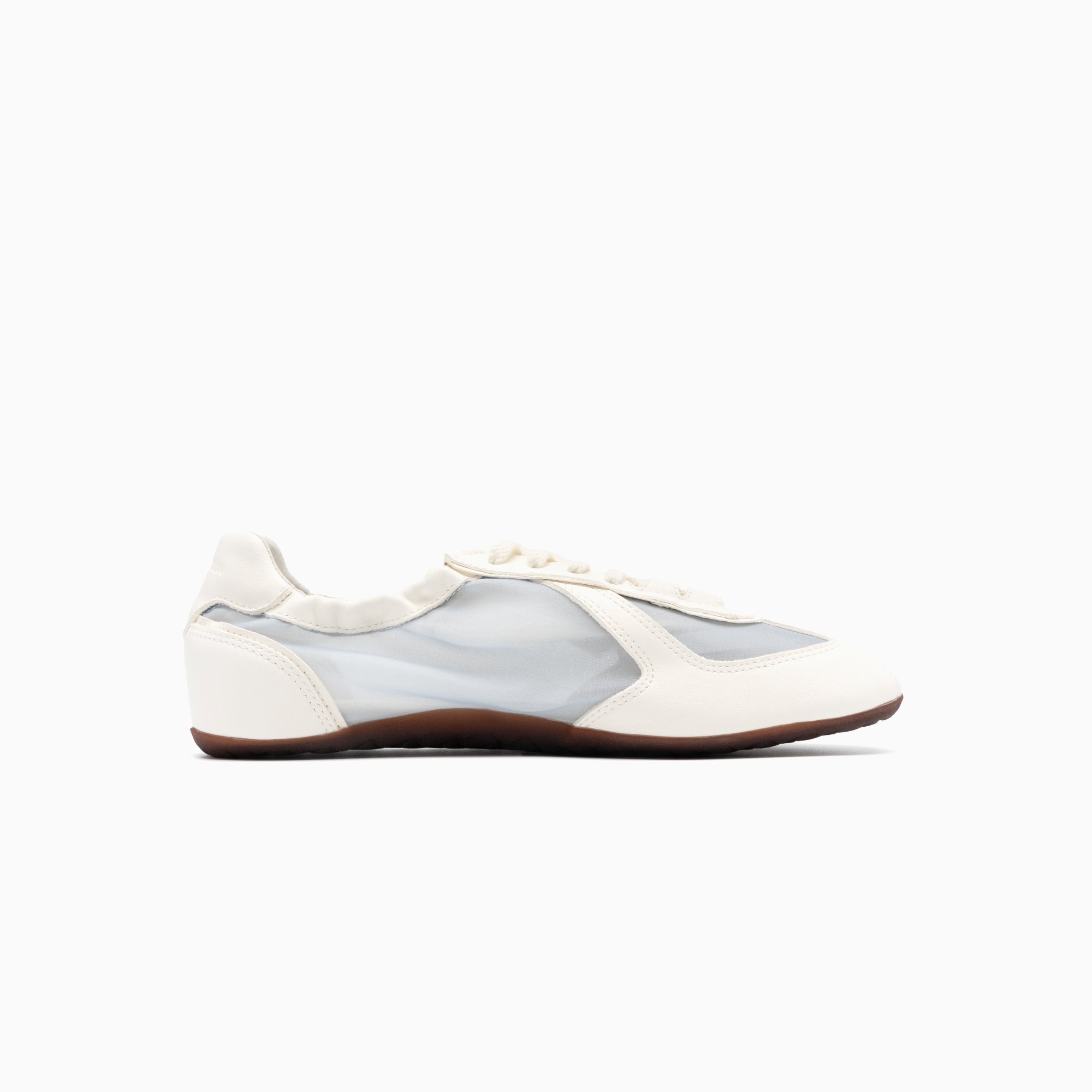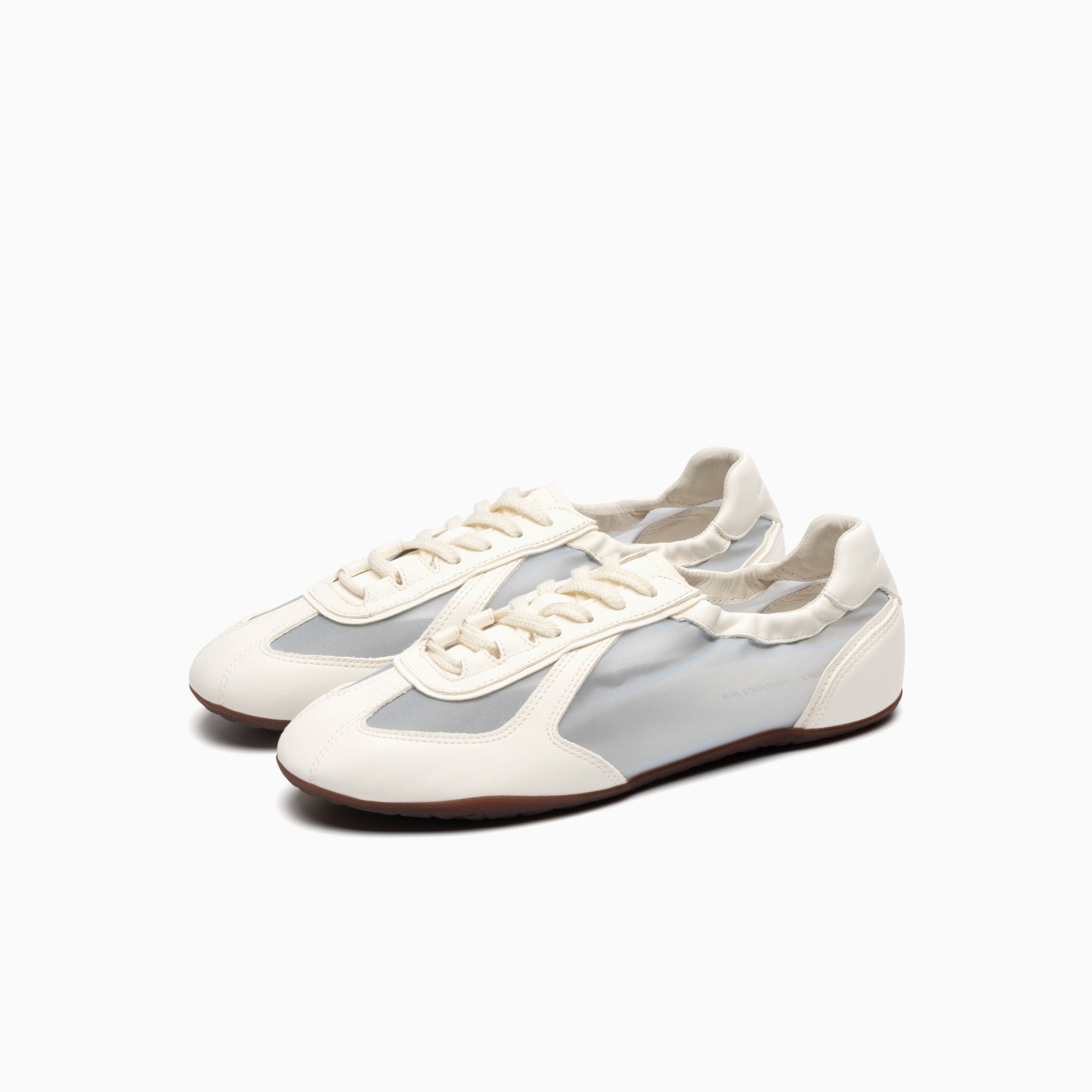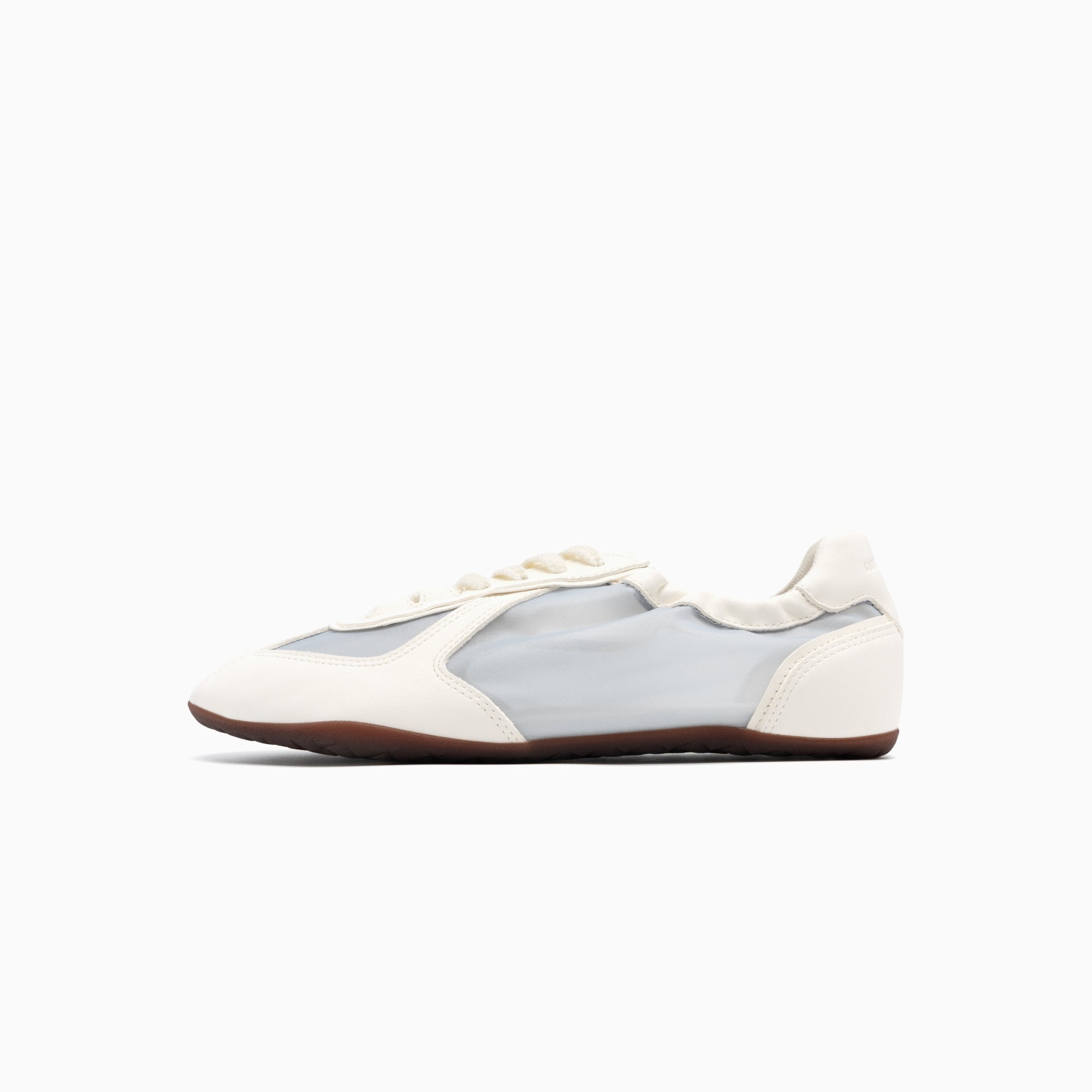 The upper is made from delicate, feminine sheer mesh, offering a soft, translucent finish that subtly reveals a hint of skin.