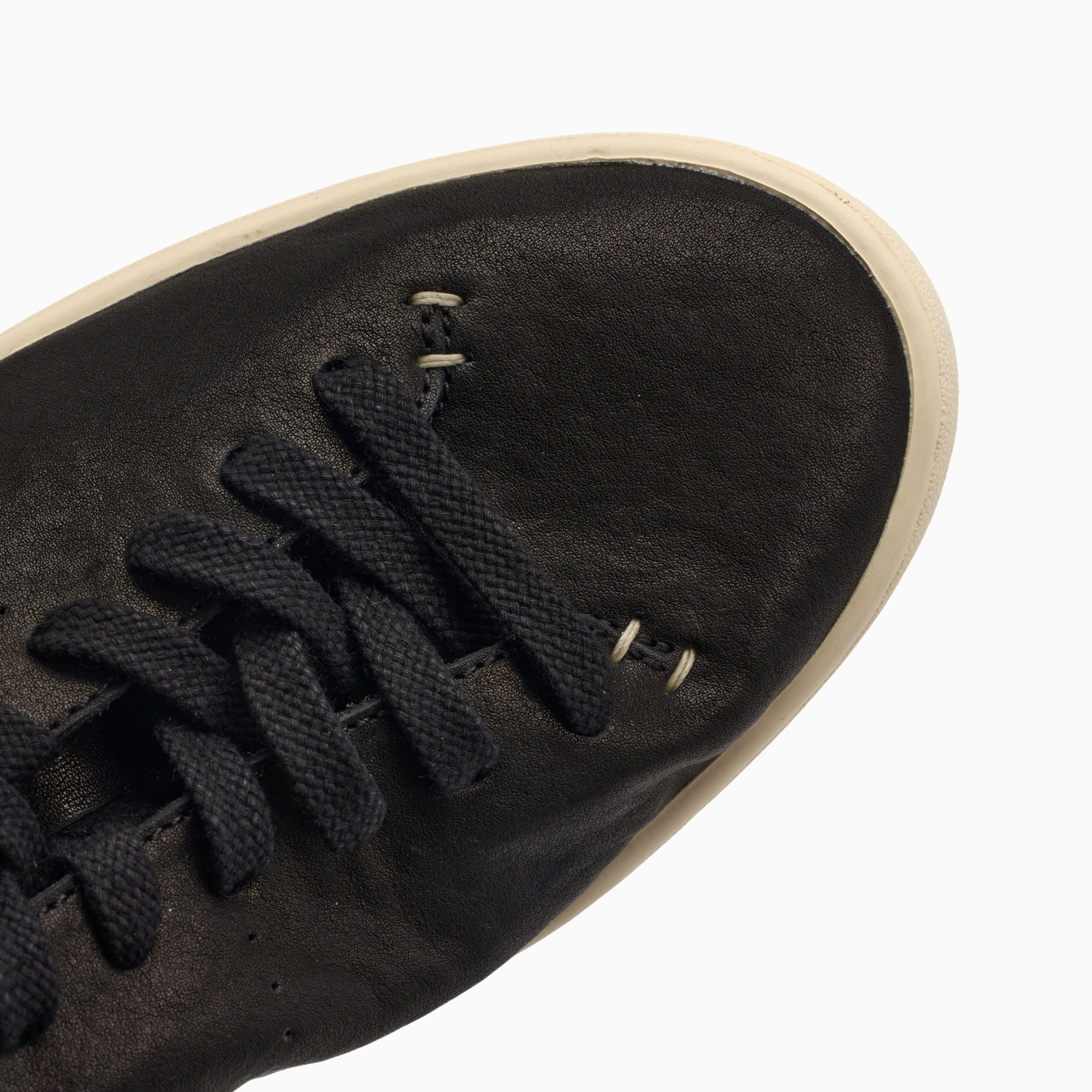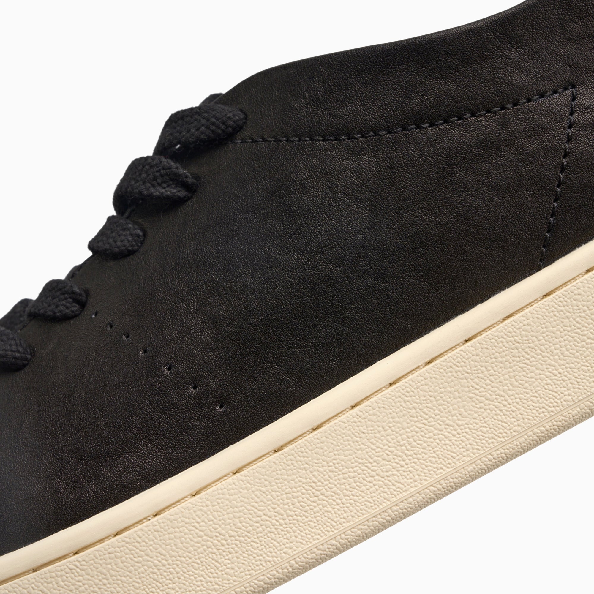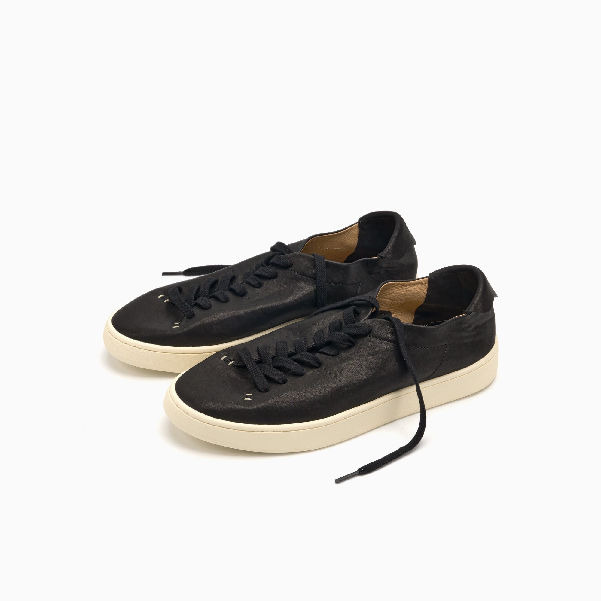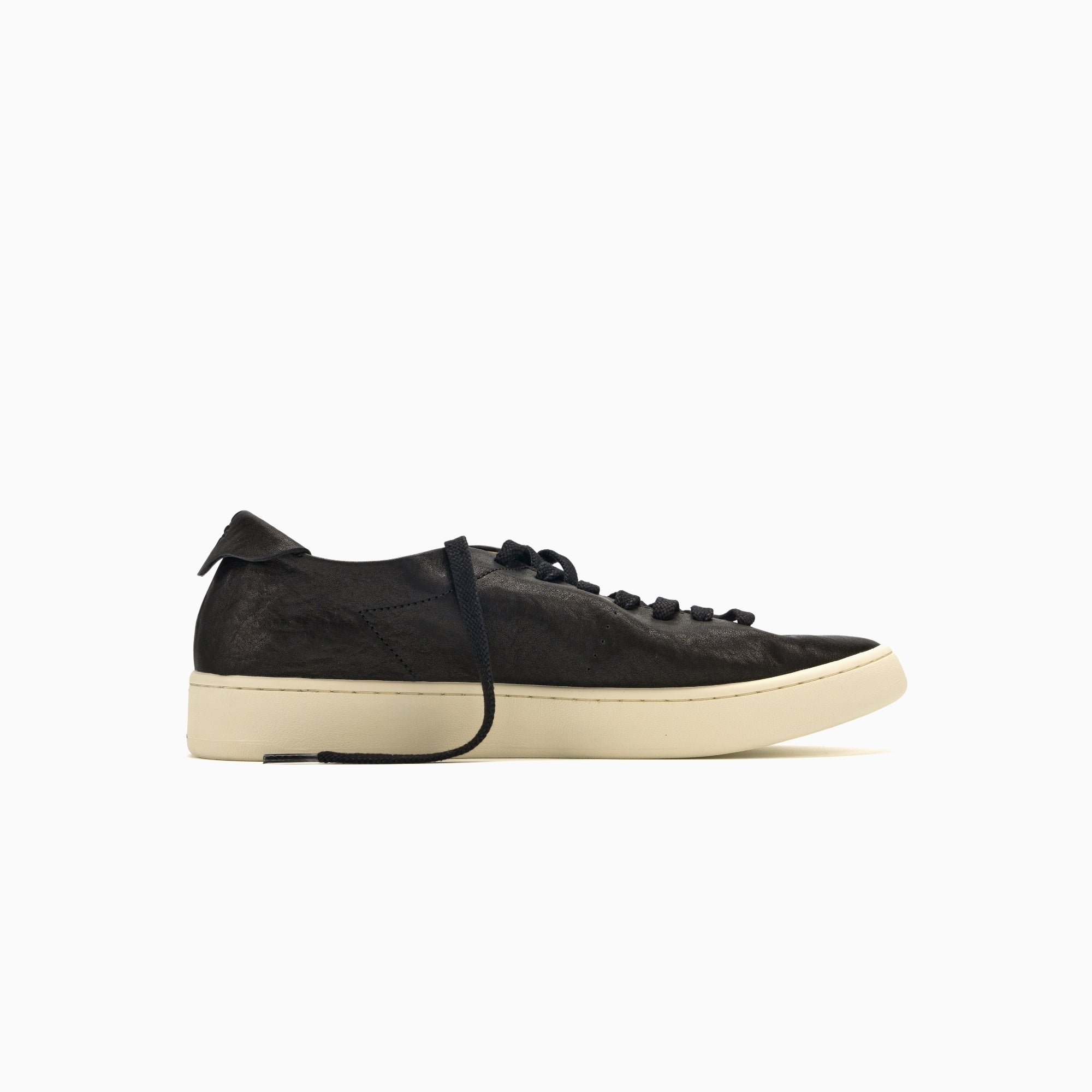 クラシックなホワイトのスニーカーに、ブランドの特徴であるソフトなアッパーデザインを組み合わせ、つま先部分を省き、靴本体、タン、後ろのシューストラップの 3 つのパーツのみで構成されています。